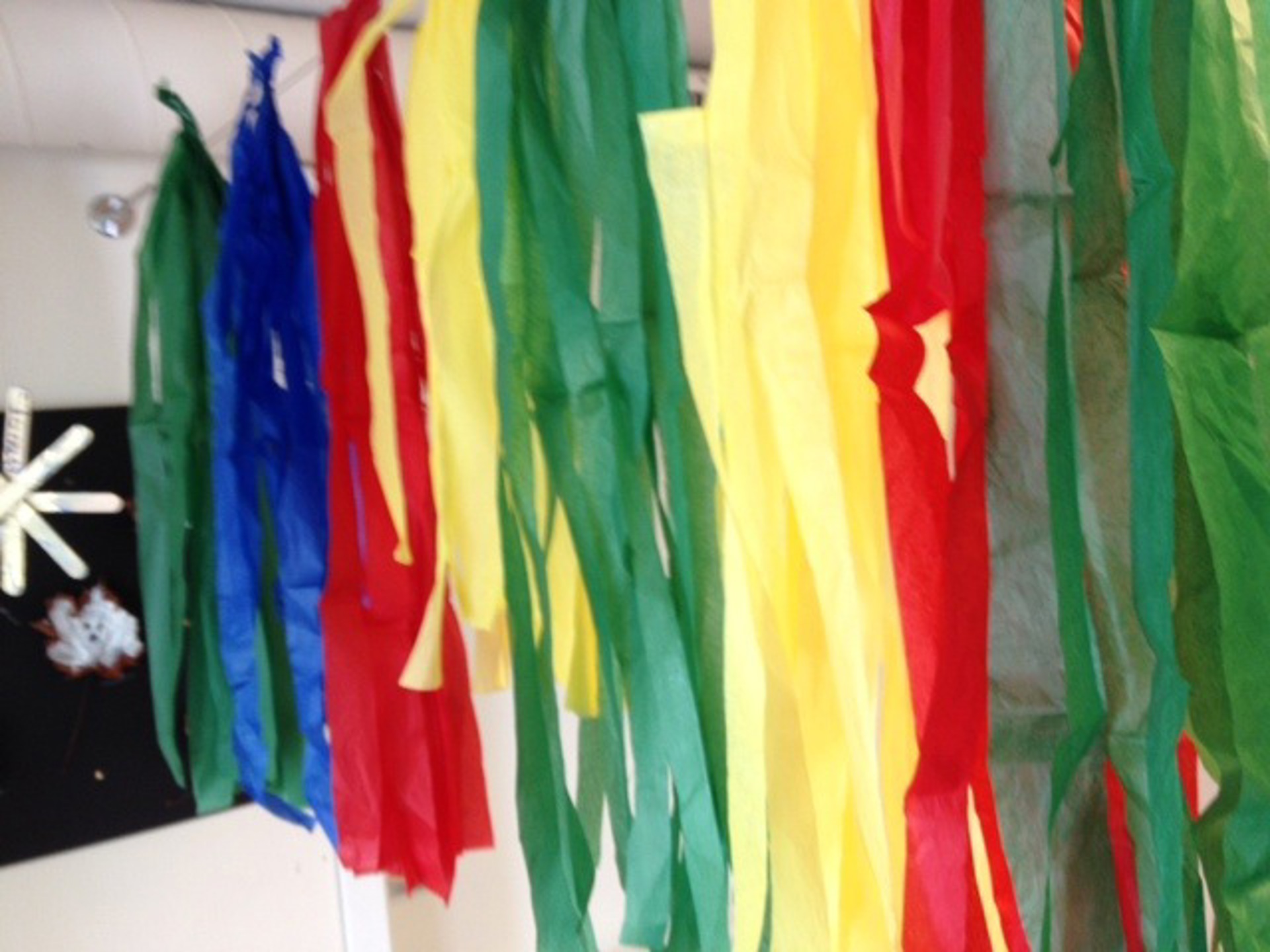 Alle barna hadde på forhånd pyntet sin egen t- skjorteDa alle hadde tatt uniformen på, var vi klare for fellessamling. Samlingen var ganske så spesiell, da de voksne i barnehagen har vært på musikkurs og lært seg mange nye sanger. Da rytmene til Djemba trommen startet var det bare å synge av full hals: Her er alle velkommen i dag, jaja, her idag...... tralalaa.